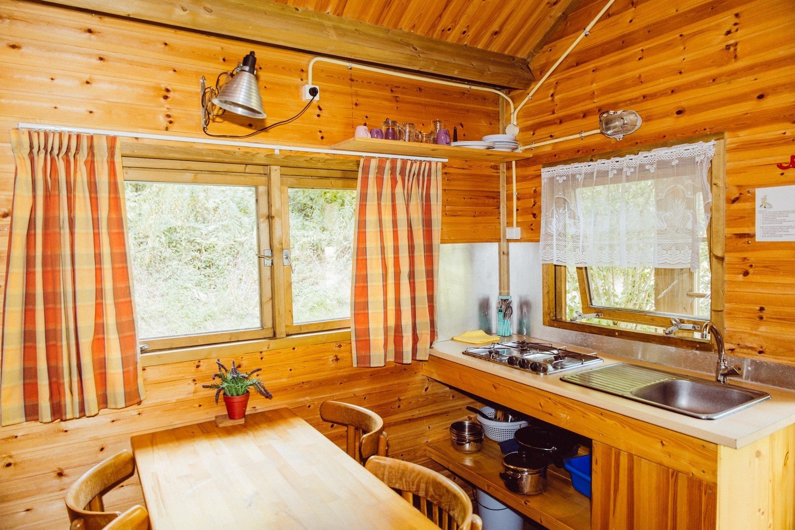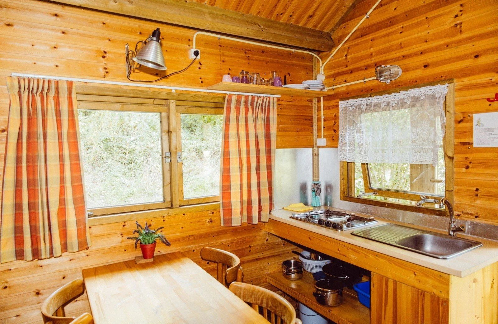 Our hiker's cabins offer simple, cosy accommodation for four people. With two bunk beds and a small kitchenette, everything you need for a practical stay is provided.