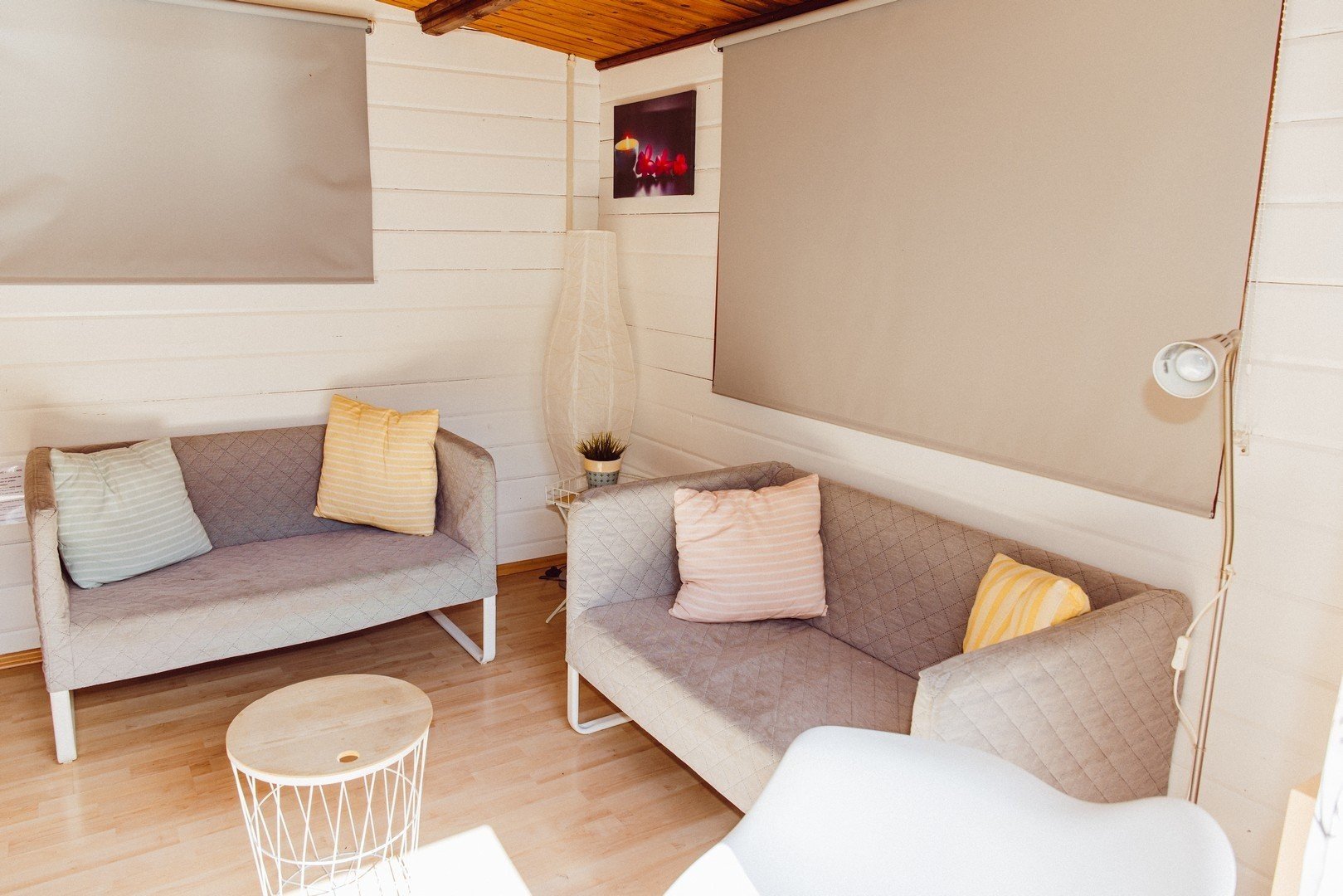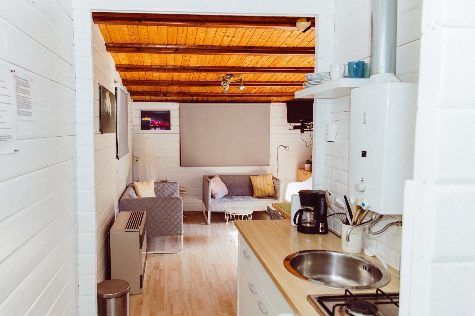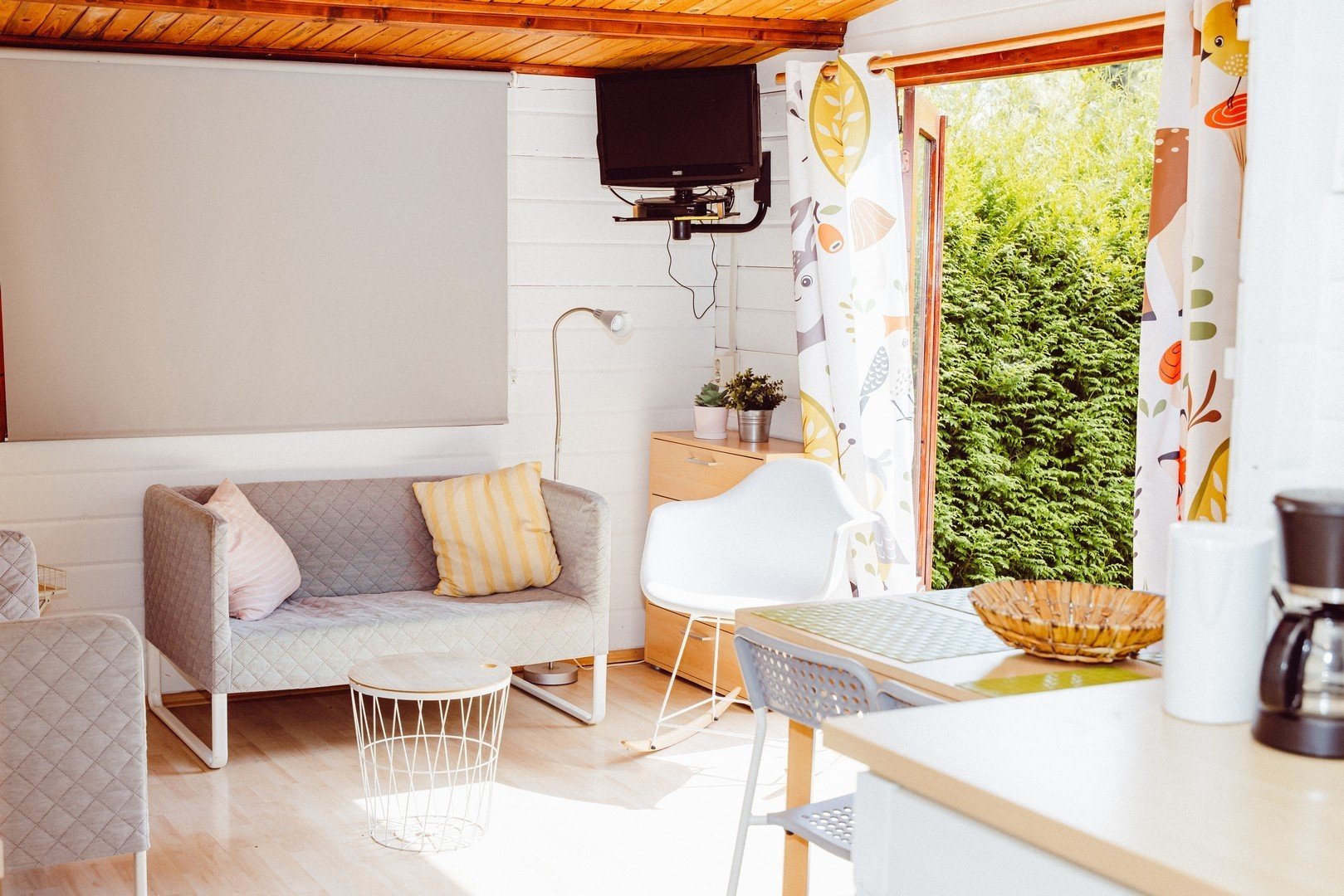The chalet has two bedrooms: one with a double bed and one with bunk beds. Shower and toilet are included. A lovely chalet for when you go on holiday with small children and/or babies.