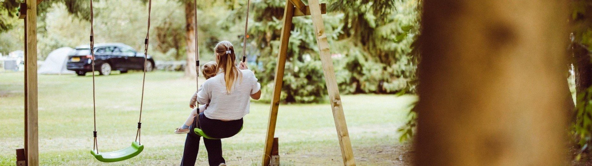 Children can play in the playground or enjoy water activities near the campsite.